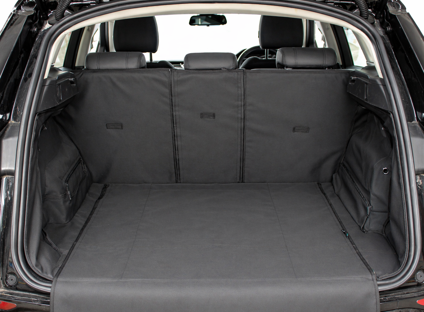 This option allows you to fold down your rear seats whilst your boot liner is still in place. Simply unclip from around the headrests and undo the Velcro at the back sides of the liner. The liner will then cover most of the rear seats when they are laid flat.